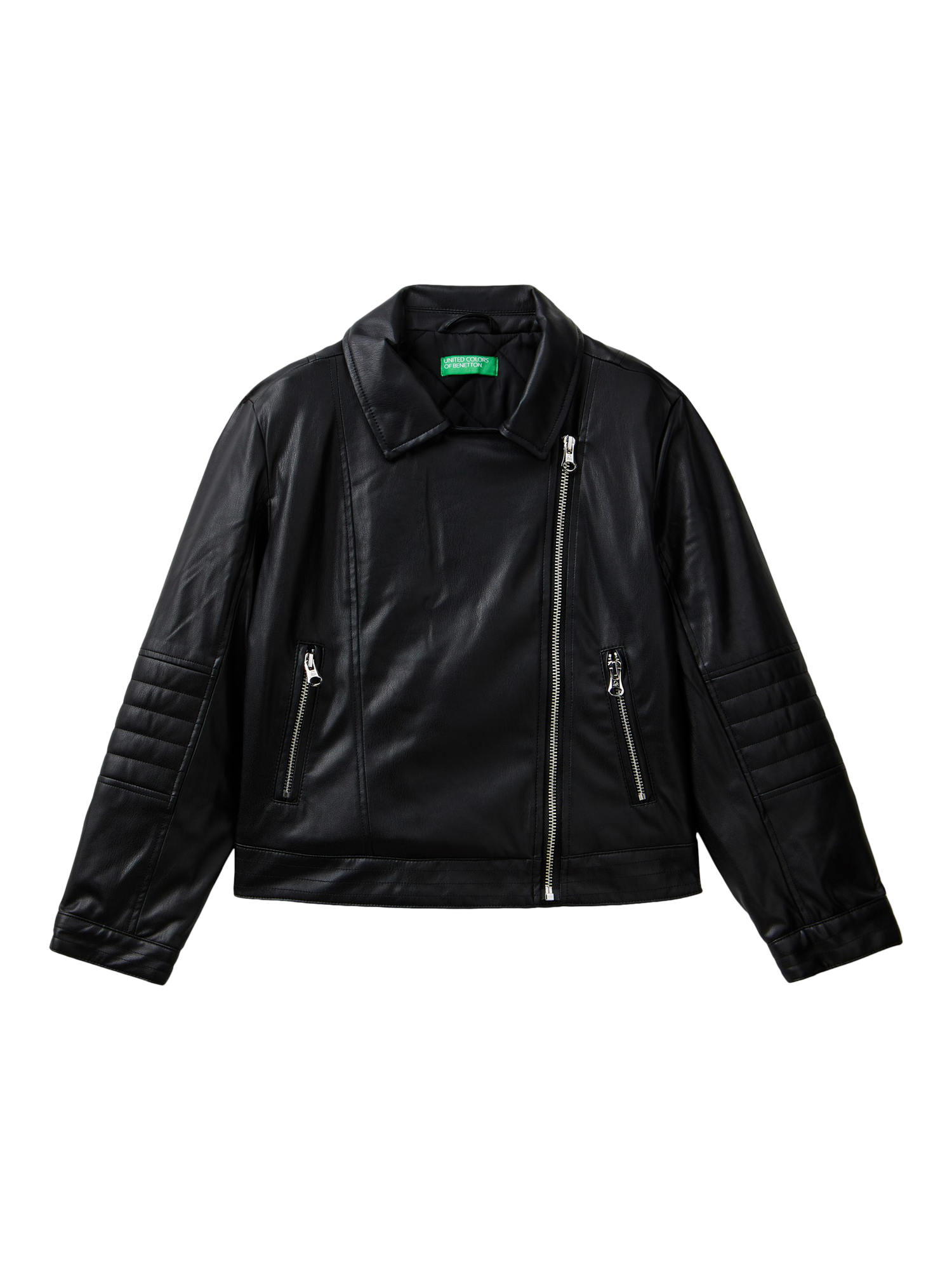 Benetton Kids Faux Leather Jacket Black Very well made.