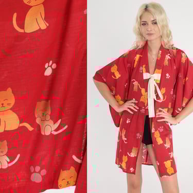 Cat Kimono Y2K Red Robe Jacket Tie Front Kitty Shop Exile Tucson AZ Very well made.