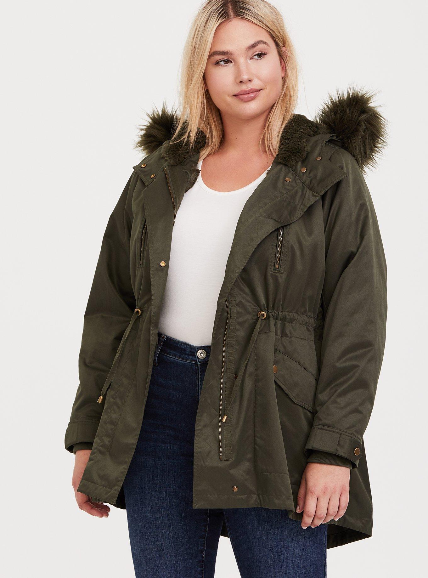 Plus Size Olive Green Twill Faux Fur Hooded Anorak Torrid Very well made.