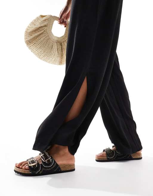 ASOS DESIGN Funky beaded double strap flat sandals in black Very well made.