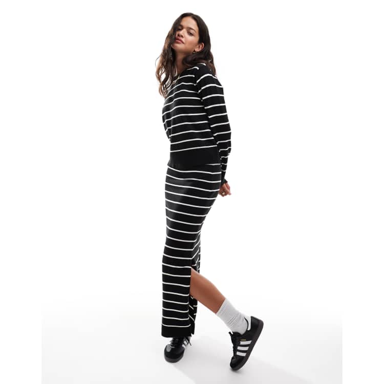 Pieces Coordinato con maglione e gonna lunga in maglia fine nera a righe ASOS Very well made.