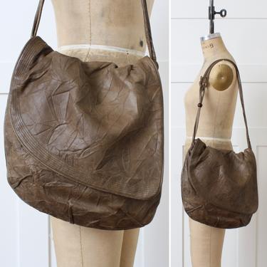 vintage 1980s Brio textured leather purse oversized asymmetrical slouchy bag Living Threads Vintage Portland OR Very well made.