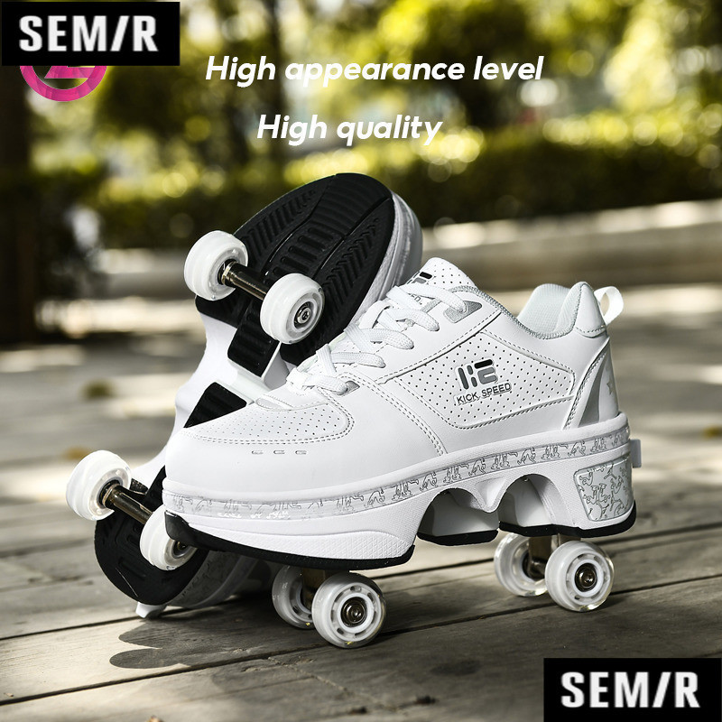 SEM R Kick roller roll shoes light translucent convertible shoes four wheel adult Skates roller skates for men and women. Shopee Singapore Very well made.