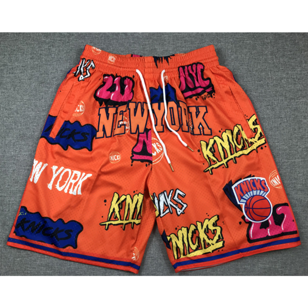2024 pockets available new men New York Knicks big logo embroidery basketball shorts pants Graffiti orange Shopee Malaysia Very well made.