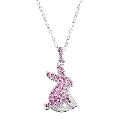 Sterling Silver Lab Created Pink Sapphire Bunny Pendant Necklace Very well made.