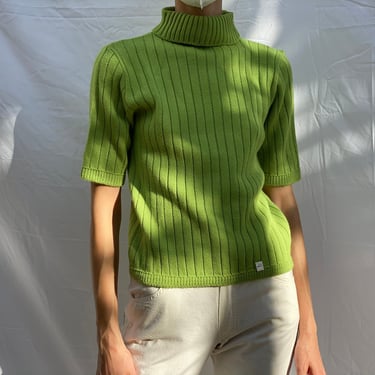 Lime Green Cropped Ribbed Turtleneck Sweater. Raw Very well made.