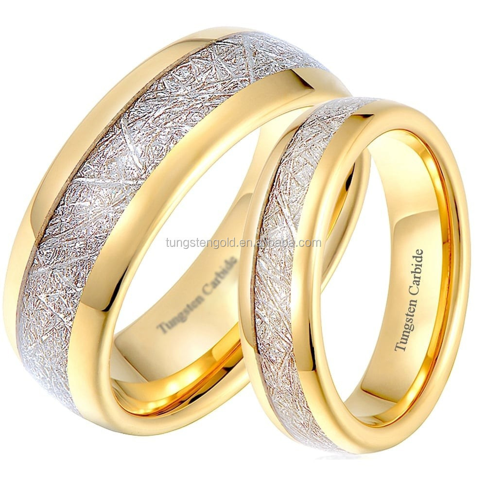 His and Hers Matching Tungsten Rings Meteorite Inlay Gold Tone Wedding Engagement Couple Rings Set BestSuppliers Very well made.