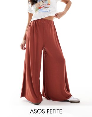 ASOS DESIGN Petite jersey palazzo beach pants in brown ASOS Very well made.