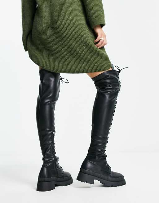 RAID Wide Fit Oakford Stivali sopra al ginocchio neri con lacci aderenti effetto seconda pelle Very well made.