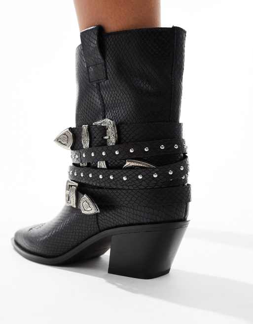 ALDO Emberlynx Stivali western in pelle nero coccodrillo con fibbie e borchie ASOS Very well made.