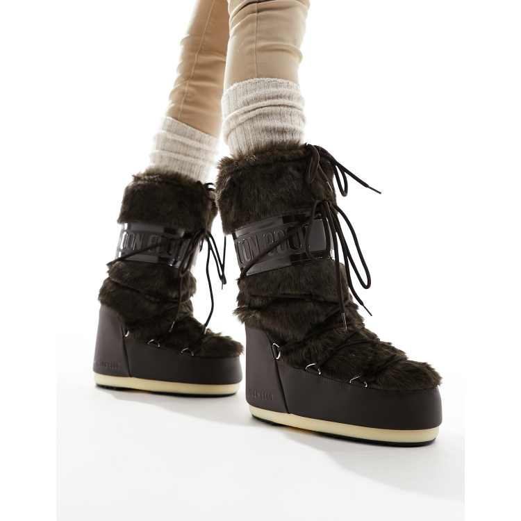 Moon Boot Stivaletti da neve alla caviglia marroni in pelliccia sintetica ASOS Very well made.