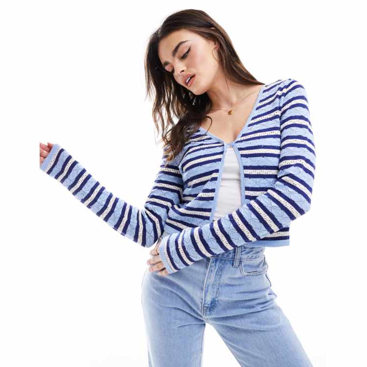 ASOS DESIGN navy cardigan with stitch detail in stripe ASOS Very well made.